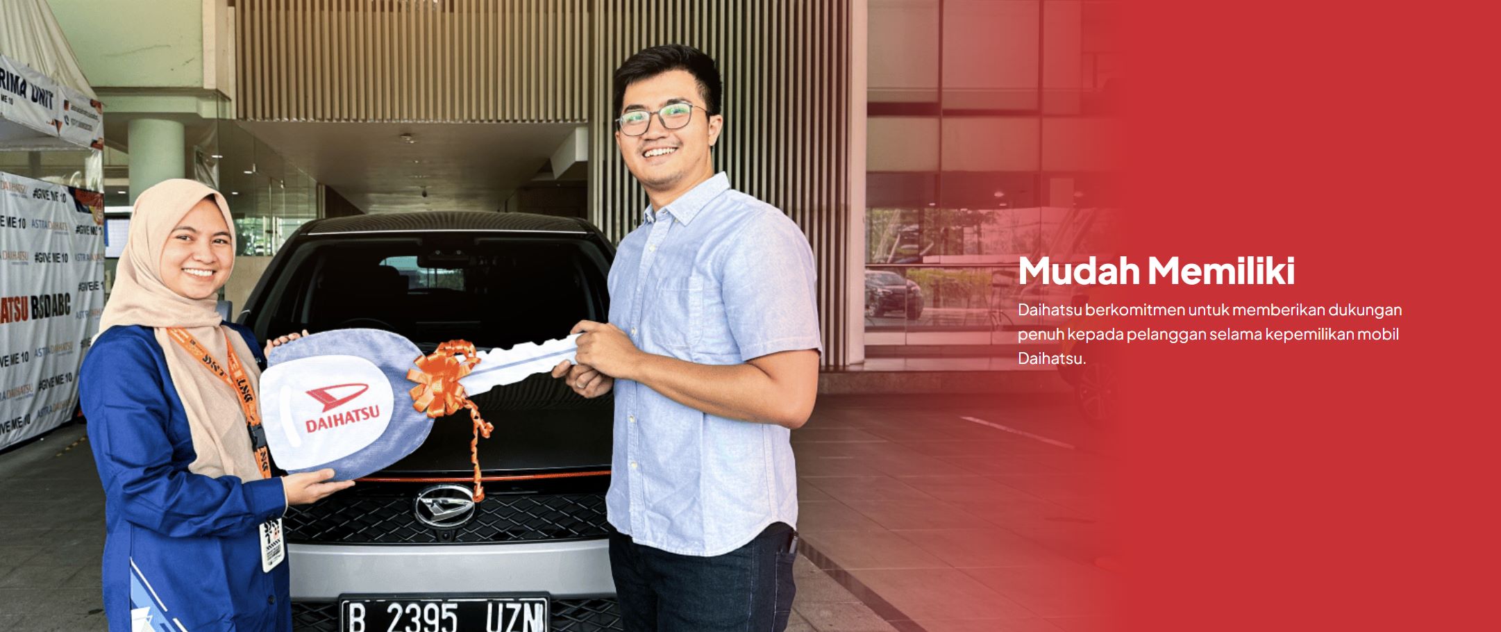 Daihatsu berkomitmen untuk memberikan dukungan penuh kepada pelanggan selama kepemilikan mobil Daihatsu. Program pembiayaan yang fleksibel dan terjangkau membuat Daihatsu semakin mudah dimiliki. Kami bekerja sama dengan berbagai lembaga pembiayaan terpercaya untuk menawarkan berbagai pilihan kredit dengan bunga ringan dan tenor yang panjang. Anda bisa menyesuaikan angsuran dengan kemampuan finansial Anda.