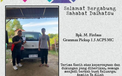 Alhamdulillah, terima kasih atas kepercayaannya. Semoga Daihatsu-nya menjadi ladang berkah dan kebahagiaan.